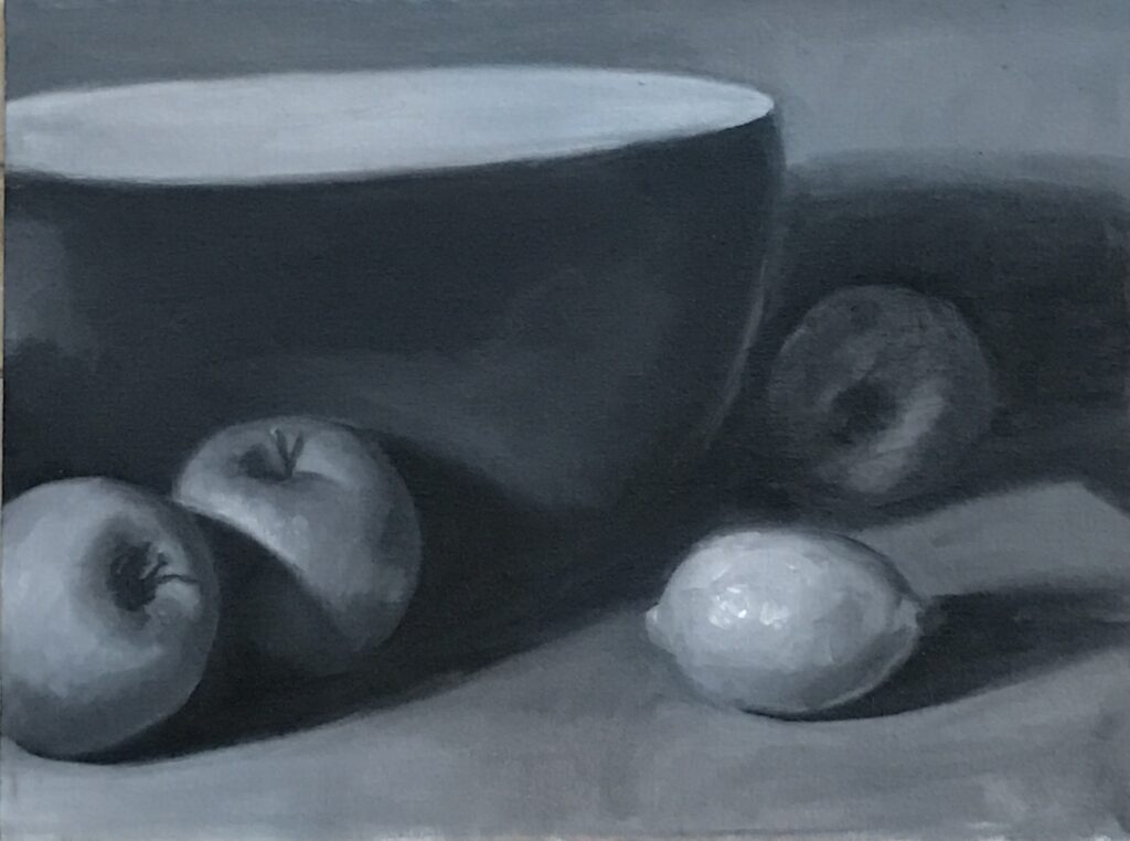 6- Try shading one simple object using a pencil (like a ball or apple from light to dark to practice volume.