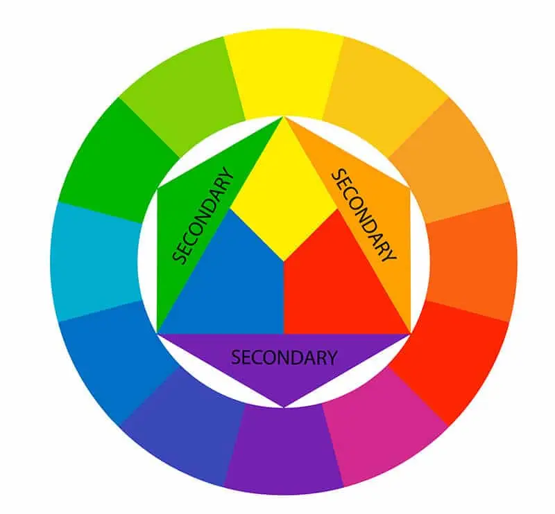 In the image below, if you focus on the triangles within the circle, you’ll see that the secondary colors are indicated as the mixtures of primary colors.