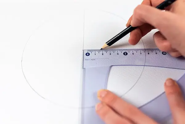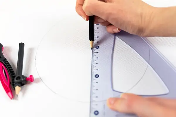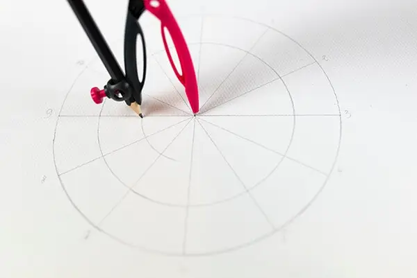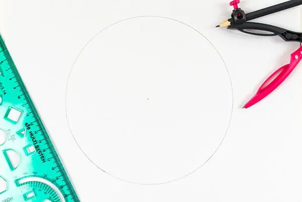 Take the paper and mark the center with a pencil. Now, make a circle with the compass but bear in mind you need to have enough space to paint in.