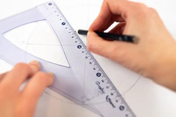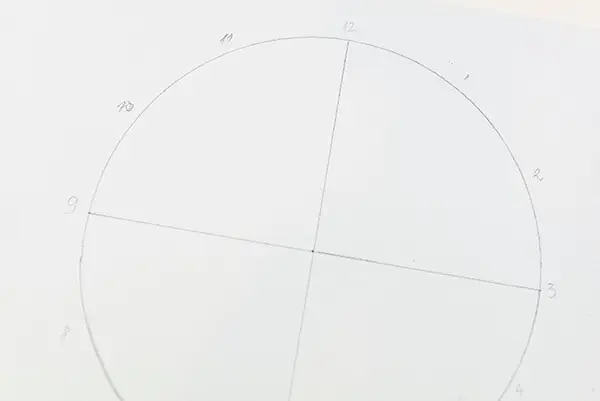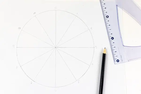 Next, draw lines to connect numbers 10 and 4, 11 and 5, and so on. These don’t have to be precise. The goal is to have 12 triangles in the circle that are approximately the same size.