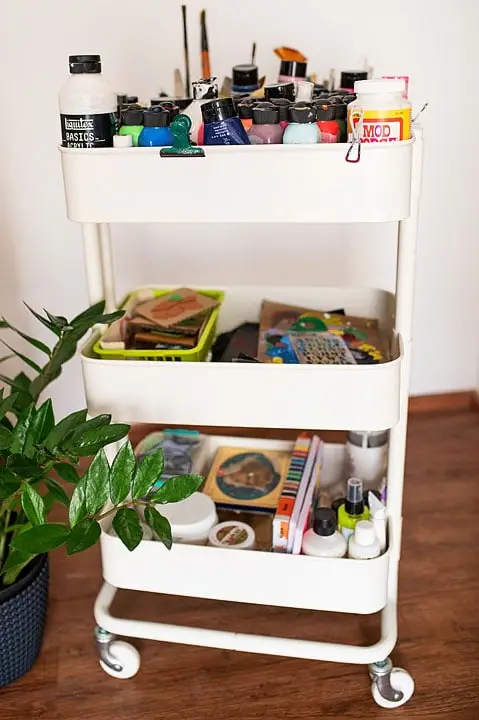 utility cart with art supplies
