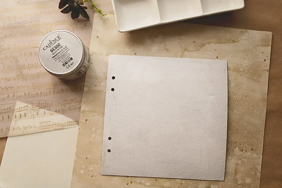 For this simple art journal tutorial, I prepared 2 cardboard covers (20×20 cm, around 8 in). You can buy cardboard at office supply stores or recycle from shoe boxes, and cereal boxes, there are so many choices.