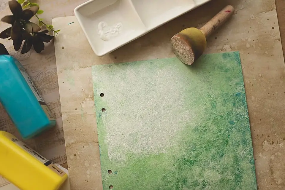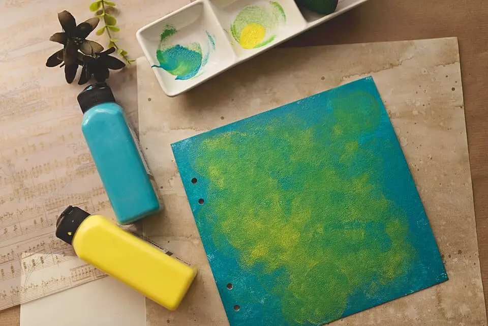 When the covers are dry, paint away! I usually mix two or three colors for the background. There are no rules here. Play with it. Put some music on and get goofy with the sponge. Or even better, fingers!