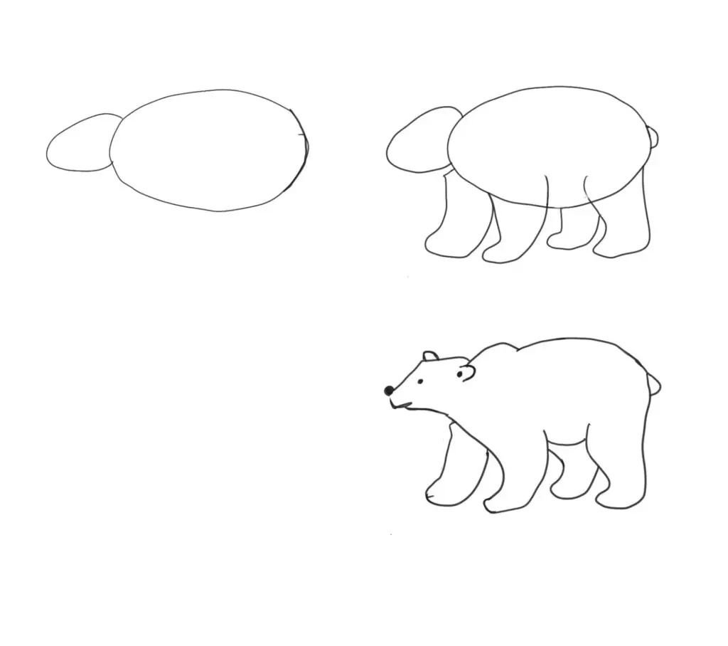 Add a dot eye, nose and tiny tail.